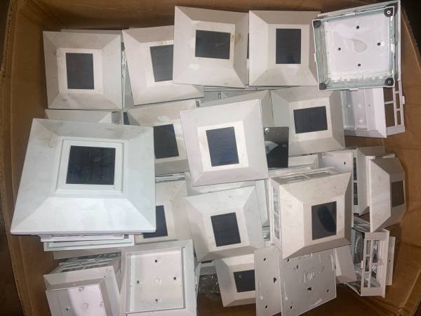 Solar Post Cap Lights Outdoor 4x4 LED Fence Post Lights 2 Modes Bright Deck Light Waterproof Square Landscape Post Lamps for 4x4 PVC Vinyl Wood Post Garden Patio Yard Walkway Decor- White. THIS IS 10.00 EACH. All tested. All work. Some need new battery's. At this time 30 available. Some have light scuffing. PRICE IS FIRM